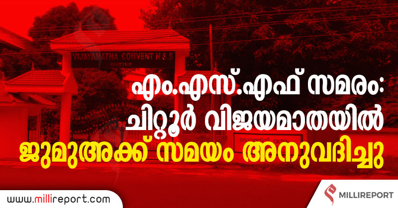 എം എസ് എഫ് സമരം: ചിറ്റൂർ വിജയമാത സ്കൂളിൽ ജുമുഅക്ക് സമയം അനുവദിച്ചു